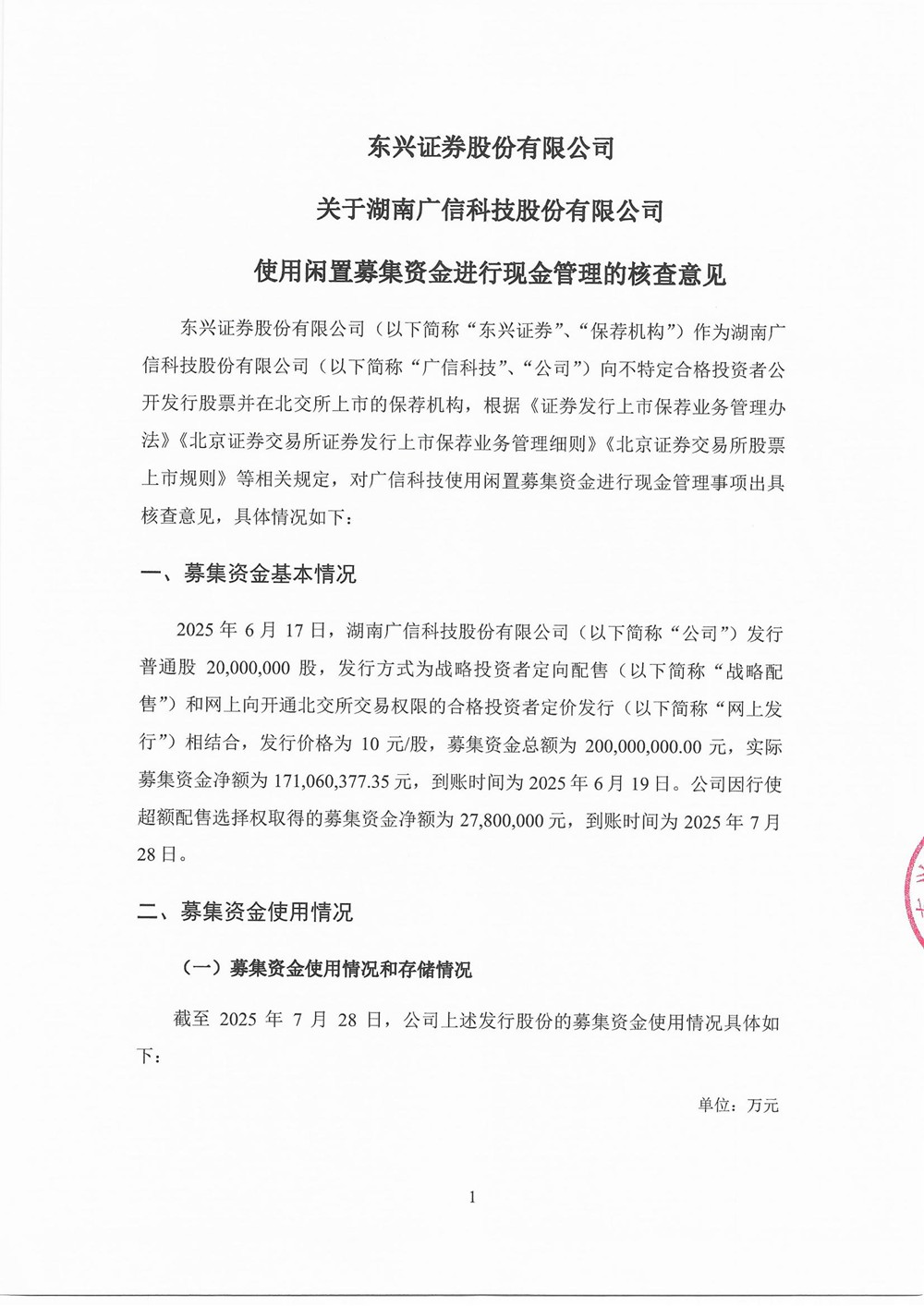 Verification opinion on using idle raised funds for cash management