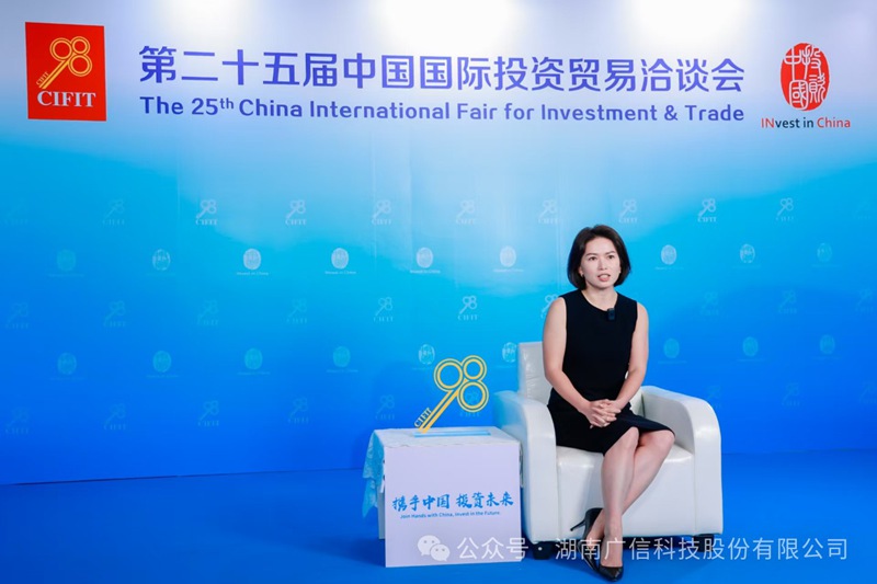 9 On the morning of the 10th of the month, Ms. Wei Yaqin, the chairman of the company, was invited to give an official interview at the China International Fair for Investment and Trade (CIFIT). She warmly responded to the media's concerns about Guangxin Technology and also conveyed the development blueprint of Guangxin Technology to the media and on-site investors.