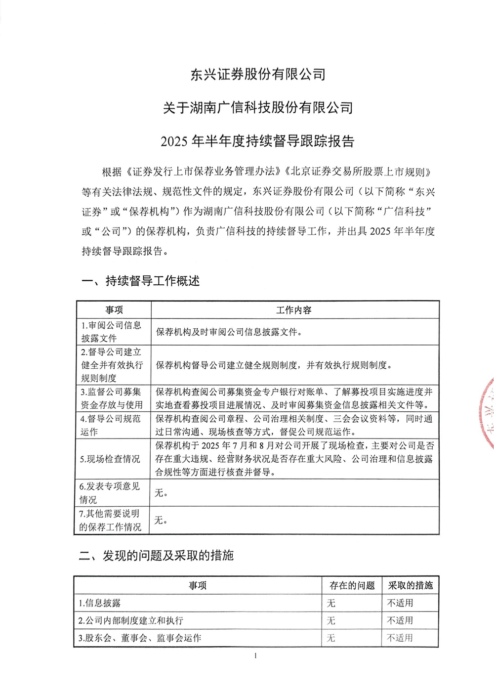 2025 Half Year Continuous Supervision and Tracking Report