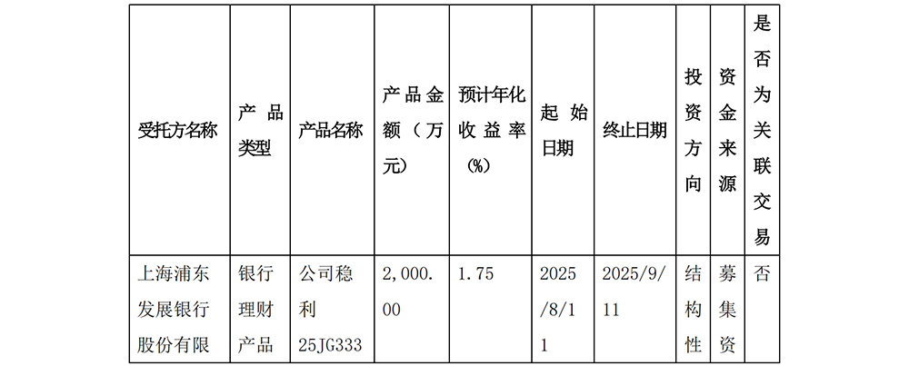 The products used by the company for cash management with idle raised funds belong to bank structured deposits, combination deposits, and 7-day notice deposits. Although investment products have undergone strict screening and evaluation, the financial market is greatly influenced by macroeconomic factors, and it cannot be ruled out that this investment product may be affected by market fluctuations. Investors are reminded to pay attention to investment risks.