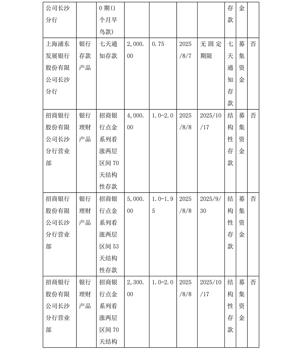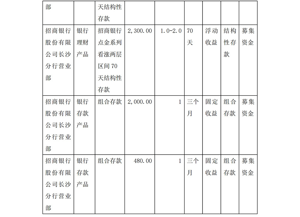 1. The trustee of this cash management product is Shanghai Pudong Development Bank Co., Ltd. Changsha Branch and China Merchants Bank Co., Ltd. Changsha Branch. The board of directors of the company has conducted necessary investigations on the trustee's basic information, credit situation, and transaction performance ability. The trustee's credit situation is good and has the ability to perform transactions.