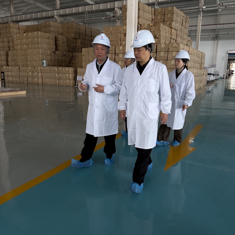 Director Peng Hailong and his delegation first visited the production workshop and R&D center of Guangxin New Materials, and gained a detailed understanding of the company's product system, technological processes, innovative achievements, and market application situation. They fully affirmed the strategic positioning of the enterprise in adhering to the development driven by technological innovation.