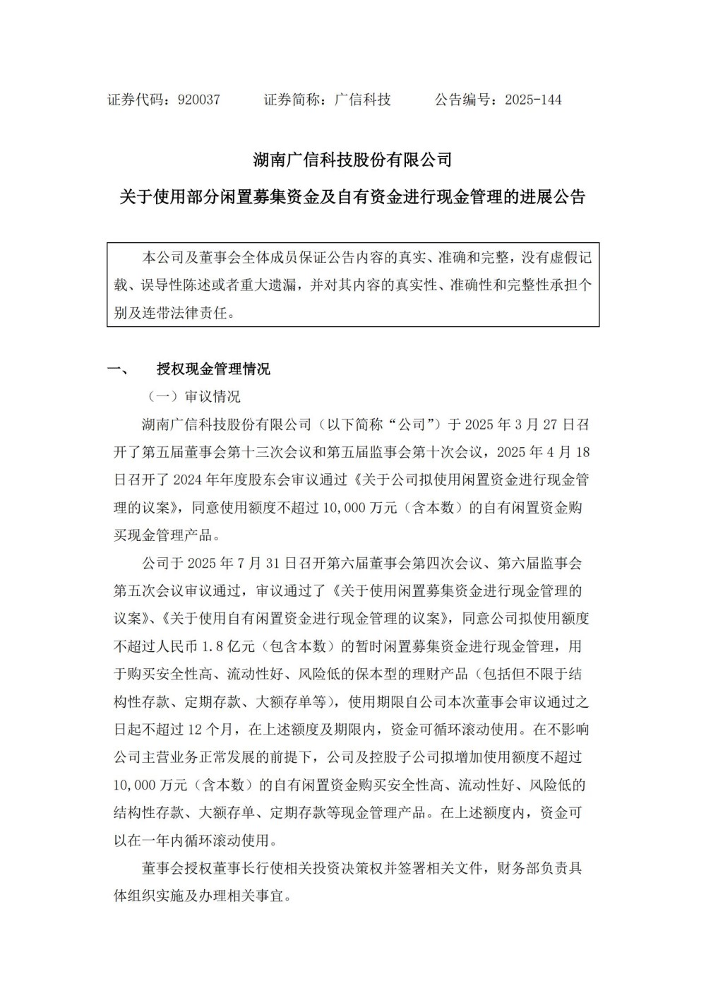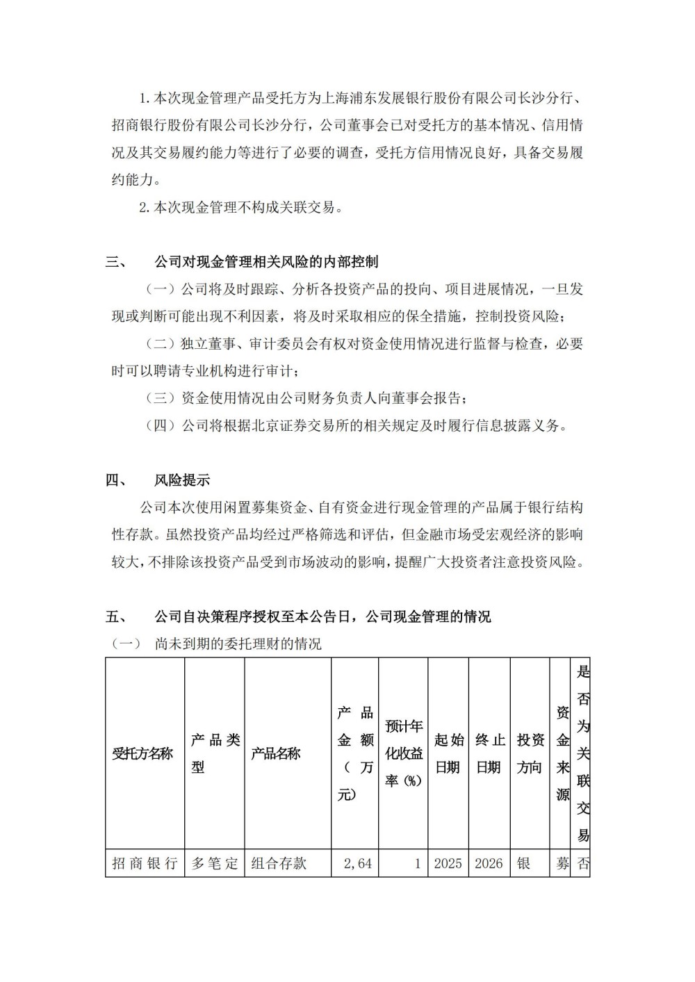Progress Announcement on the Use of Part of Idle Raised Funds and Self owned Funds for Cash Management
